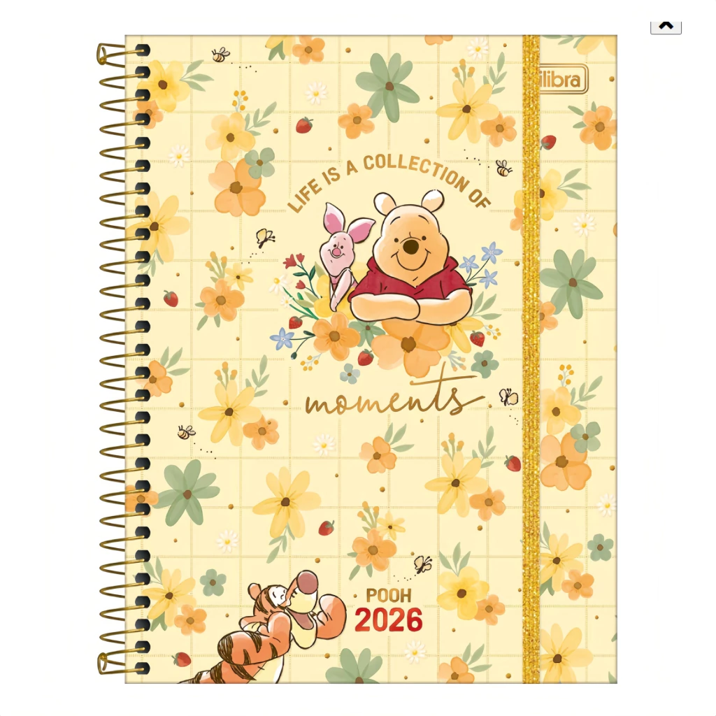 E não para por aí! Ele vem com um bolso decorado, fechamento com elástico e um conteúdo especial com listas, controle financeiro, metas e até autoconhecimento. Prepare-se para um ano leve e organizado, ao lado do Pooh!