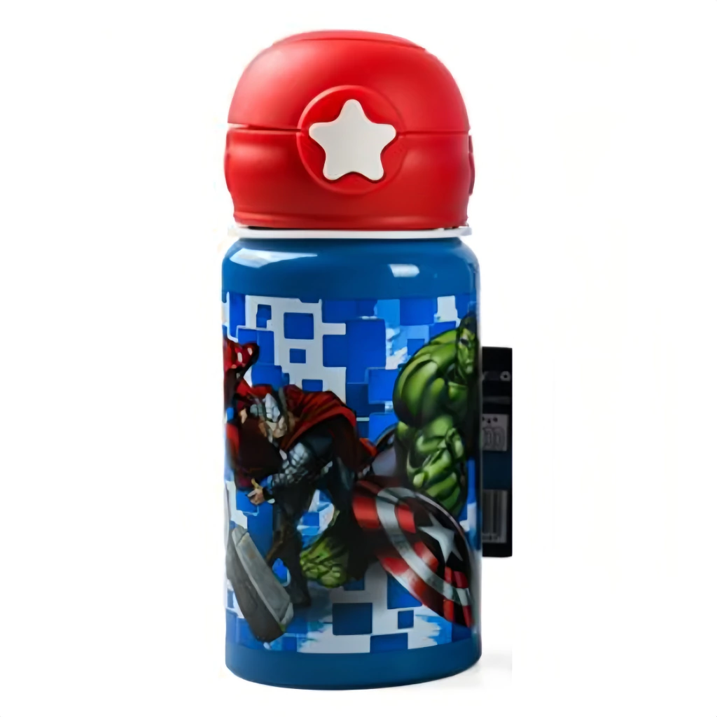 Garrafa de Alumínio Vingadores com Trava de Segurança e Canudo – 500ml