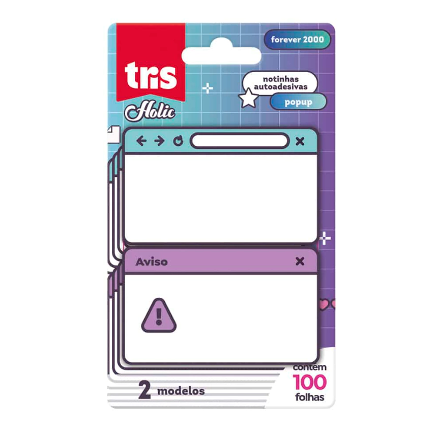 A coleção Forever 2000 dá um toque moderno aos elementos nostálgicos que estão em alta. Cores fortes, molduras de sistemas operacionais antigos e efeito glitch são algumas das características dessa linha que veio para resgatar os anos 2000 com muita diversão e estilo. As notas autoadesivas Pop Up possui 2 modelos de 50 folhas cada. Dimensões: 75x45mm.